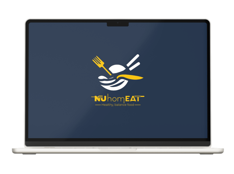 El logotipo y estilo visual de NUhomEAT reflejan un compromiso con la salud y la sostenibilidad. La tipografía Montserrat, moderna y orgánica, junto con colores serenos como el azul marino y el amarillo anaranjado, transmiten equilibrio, confianza y energía. Esta identidad visual se dirige a un público que busca alimentarse bien sin comprometer el sabor o la calidad, resaltando los valores de salud y conciencia social de la marca.